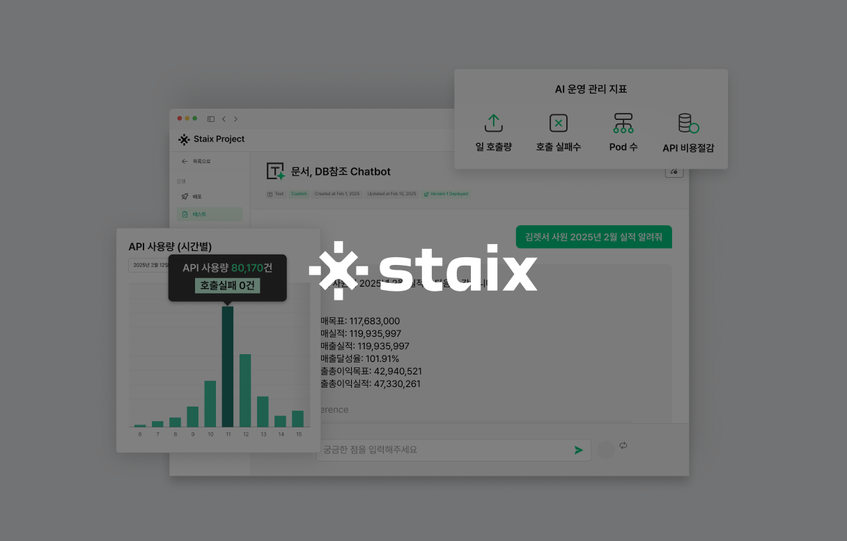 AI 도입 이후 지속되기 위해서는 운영 안정성과 체계적인 유지관리 시스템이 뒷받침되어야 합니다. 스테이엑스는 AI 도입 이후의 ‘운영 안정성’을 책임지는 렛서의 AI 운영관리 플랫폼입니다. 복잡한 대규모 AI 모델을 안전하게 배포하고, 지속적으로 최적의 성능을 유지합니다.